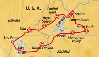 Puisque le départ du circuit se fait de Las Vegas, il est tout à fait possible d'envisager la visite de "la ville qui ne dort jamais" pendant quelques jours avant. Profitez de notre sélection d'hôtel sur le Strip !